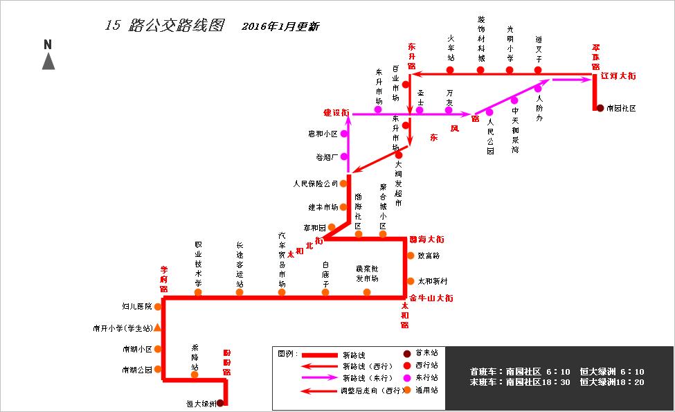 南園社區(qū)—翠珠路—原線—學府路—南湖小區(qū)(現(xiàn)終點)—學府路—南湖公園南側道路—盼盼路—恒大綠洲(調整后終點)。